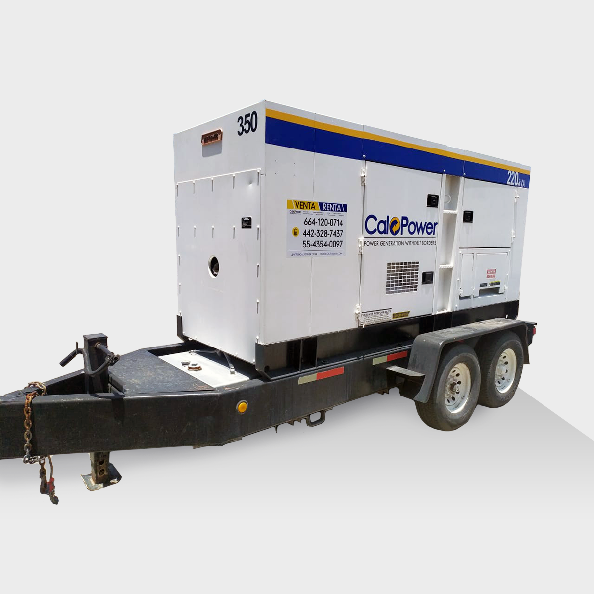Multi-Quip DCA-220ssk. Diesel generator. 220 kVA prime (176 kw & 193 kw stand by). Engine Volvo penta. 240/480v, 60 hz, 1800 rpm. Analog control panel. Alarms and safeties shutdown. Sound attenuated enclosure. Trailer mounted (2 axle). 2 tanks (on unit +trailer). Load bank tested @ full load.